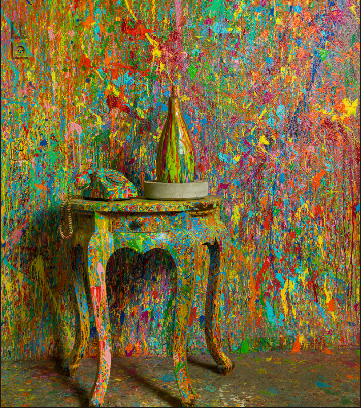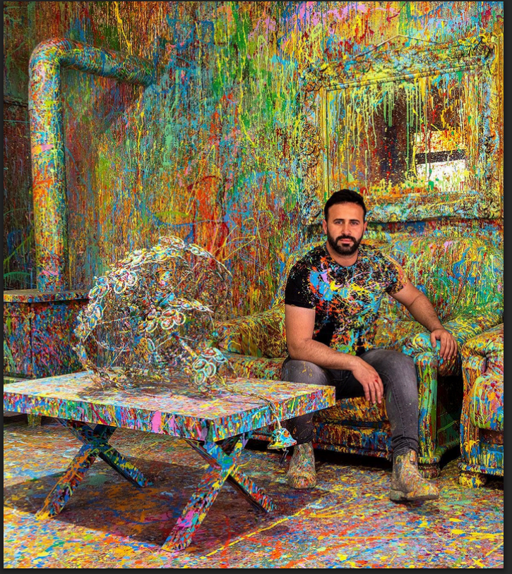 Halaby paints in thousands of hues, using powerful drips and bold splashes to create new textures across canvases and his home’s