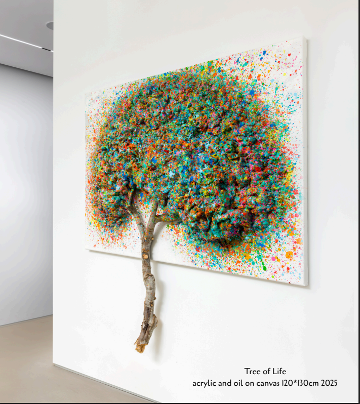 The colorful trees and flowers carry with them a sense of life, growth, and vital renewal, at times evoking internal visions – an expression of Halaby’s inner world. As the tenth child, after nine sisters in his family, he expresses his sense of self as the exceptional, independent son, the new creator bringing fresh and innovative spirit to his family’s artistic tradition.