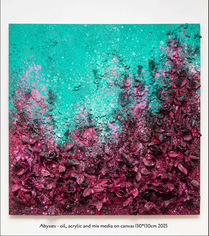 Like Pollock, Sam Francis used drips and fluid paint for creative freedom, influenced by Zen and Eastern arts. Joan Mitchell also employed drips and smears in emotionally charged, intuitive compositions. Halaby’s work channels this expressive lineage with a